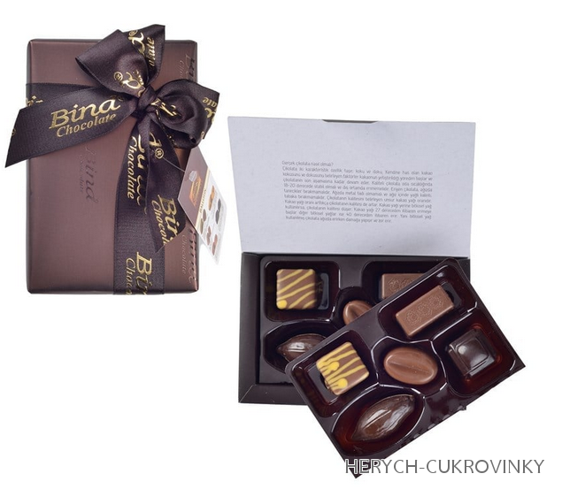 Směs pralinek z mléčné a hořké čokolády s naplní ganache.