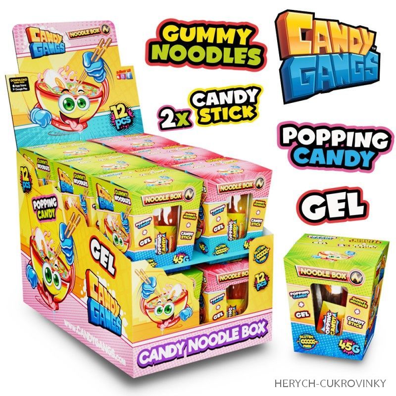 12 ks balení - cukrovinka ve tvaru boxu na čínské nudle - obsahuje želé nudle, gel jako omáčku a bonbonky ve tvaru hůlek