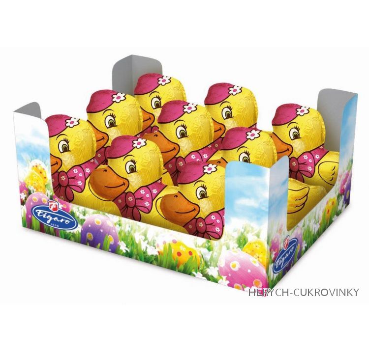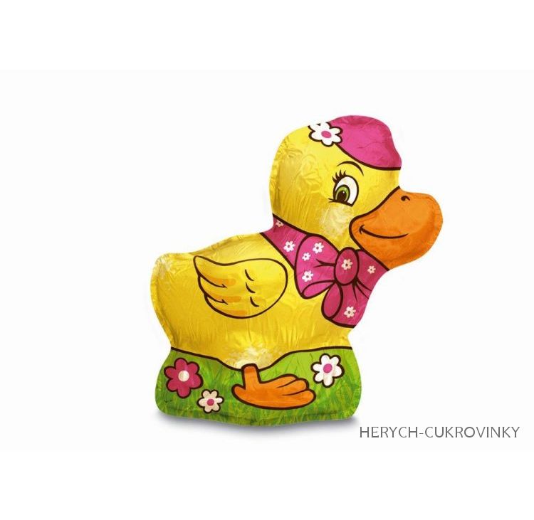 Čokoládová figurka dutá z mléčné čokolády balená ve staniolu.