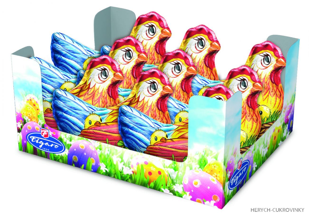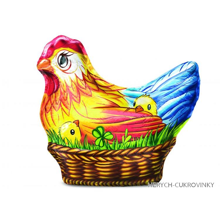 Čokoládová figurka dutá z mléčné čokolády balená ve staniolu.